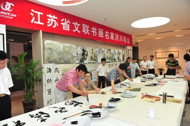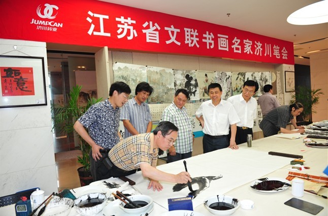 7月12日,江蘇省文聯(lián)黨組書(shū)記、常務(wù)副主席王慧芬、省美協(xié)秘書(shū)長(cháng)尹石、省書(shū)協(xié)副秘書(shū)長(cháng)李嘯、省文聯(lián)組聯(lián)部主任陳曉白、省文聯(lián)大型活動(dòng)部主任薛彪一行11名書(shū)畫(huà)名家蒞臨濟川藥業(yè)集團書(shū)畫(huà)院考察指導,并激情揮毫留下珍貴墨寶。泰興市市委副書(shū)記、政協(xié)主席張澤民和濟川藥業(yè)董事長(cháng)曹龍祥以及眾多書(shū)法愛(ài)好者參加了活動(dòng)。